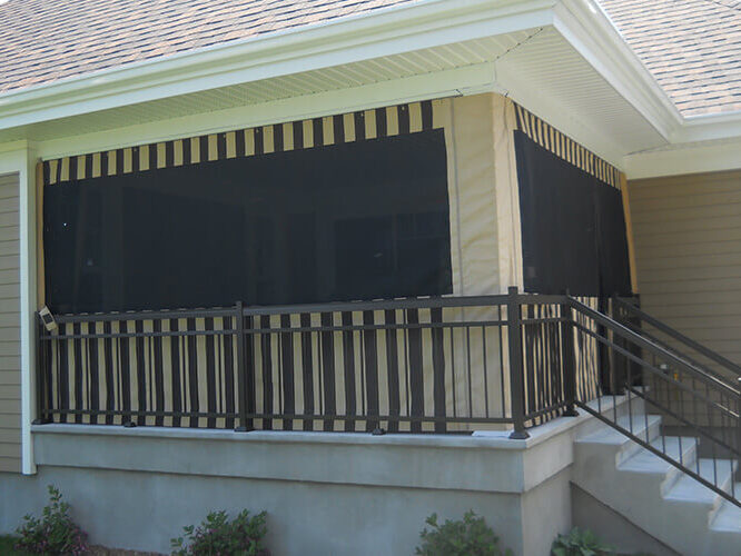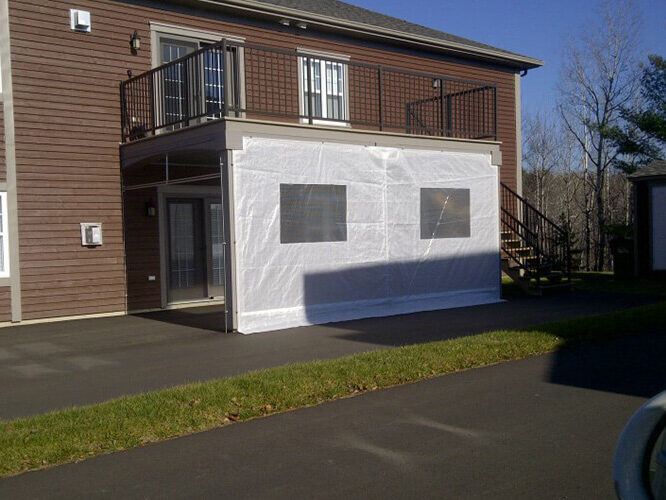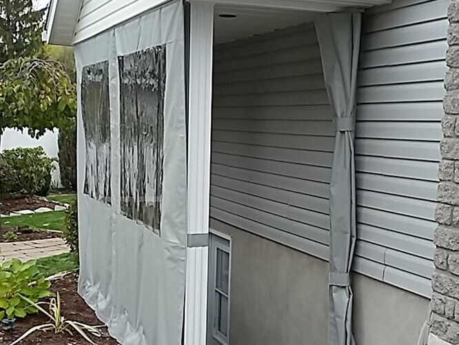 Designed to your specifications, our custom exterior curtains will protect you against wind, rain, snow or insects and will meet your requirements.