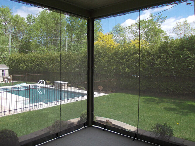 A wide range of options are available: mosquito net, heavy-duty mosquito net, solar fabric, clear or tinted plastic and more.